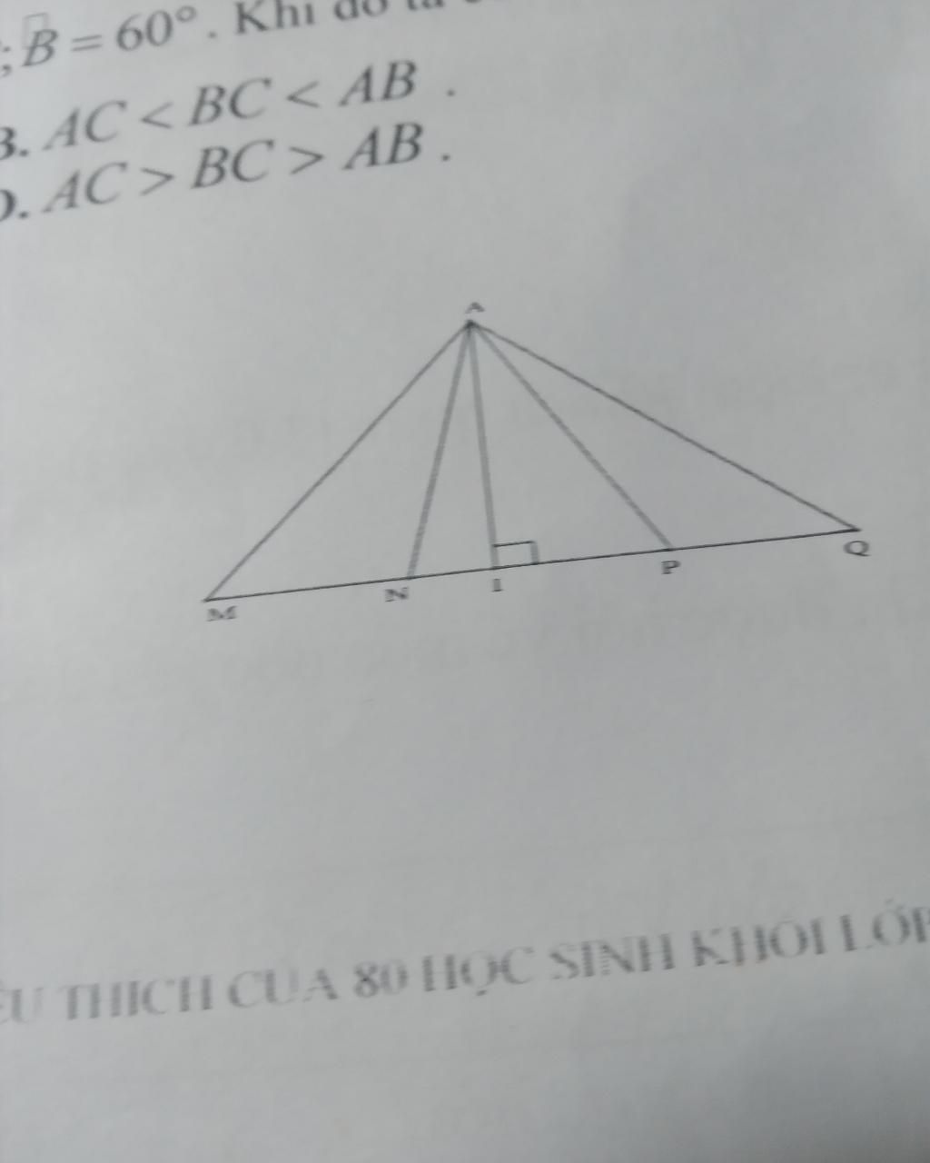 C.đường xiên kẻ từ A đến MQ là AM,AN,AP,AQ/Đúng