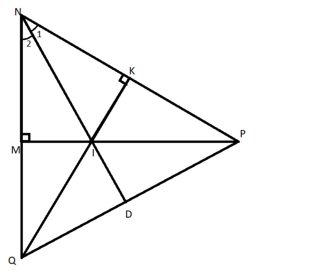 Cho tam giác MNP vuông tại M có MN<MP, kẻ đường phân giác Ni của góc MNP (I thuộc MP). Kẻ IK vuông góc với NP tại K