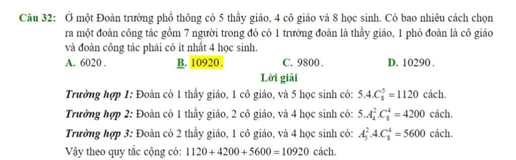 Trường hợp $3:$ Chọn $2$ thầy giáo ở $2$ vị trí khác nhau trong đó có $1$ trưởng đoàn nên là $A^2_5$
