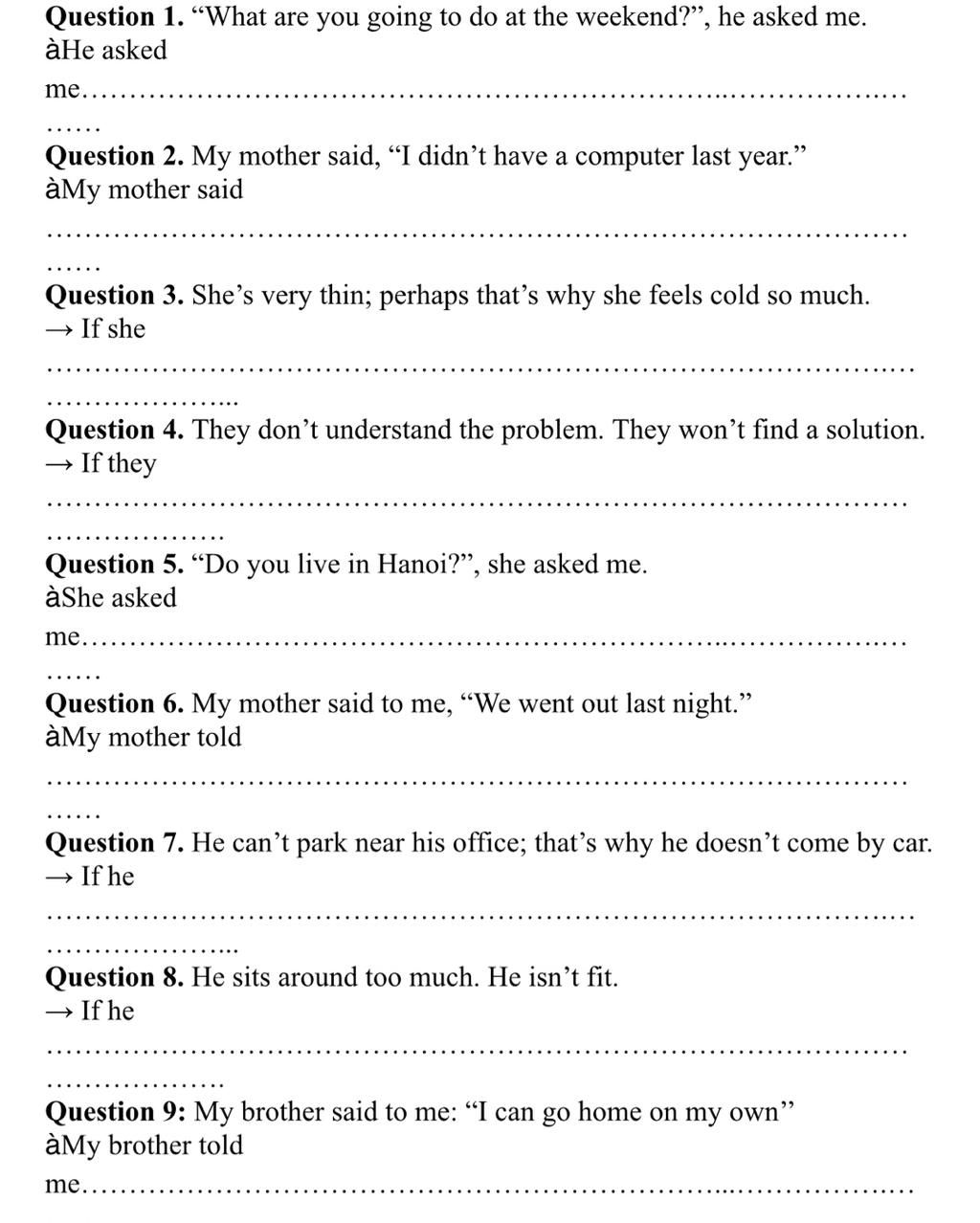 `@` Dạng câu hỏi yes/no: S + asked/... + (O)+ if/whether + S + V (lùi 1 thì)