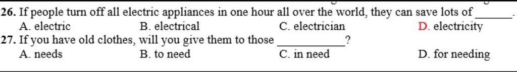 26. If people turn off all electric appliances in one hour all over the world, they can save lots of
