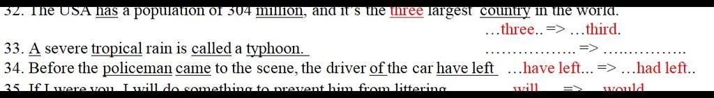 34. Before the policeman came to the scene, the driver of the car have left ...have left... =>...had left..