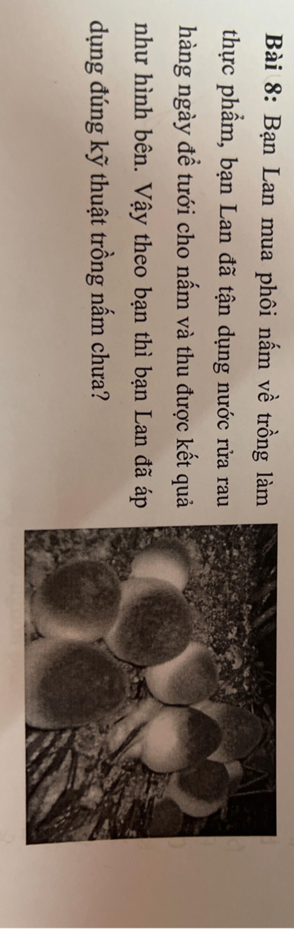 Bài 8: Bạn Lan mua phôi nấm về trồng làm