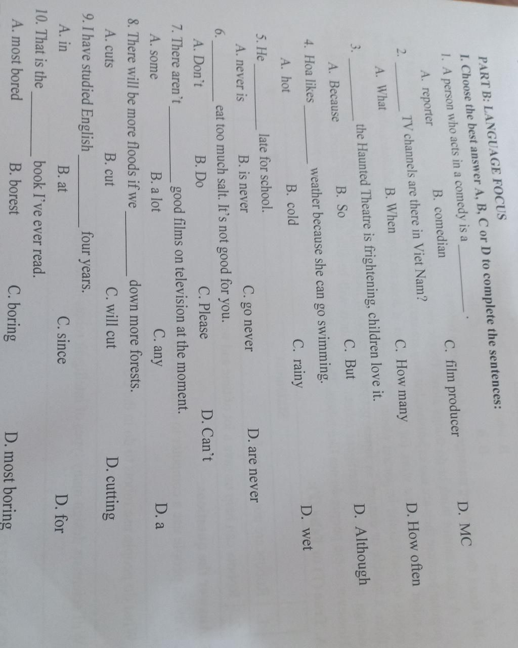 `-` Trạng từ (never) đứng sau động từ `=>` chọn `B`