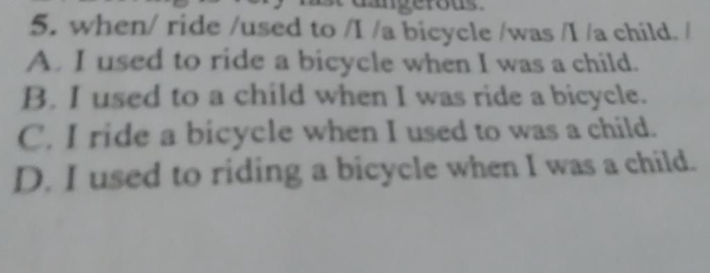 - Tạm dịch : Tôi đã từng đi xe đẹp khi tôi còn là một đứa trẻ.