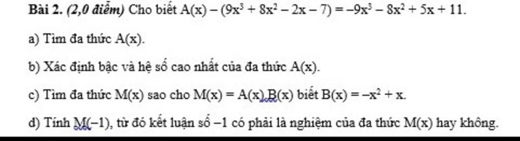 a, có A(x) - ( 9x³ + 8x² - 2x - 7 ) = - 9x³ - 8x² + 5x + 11