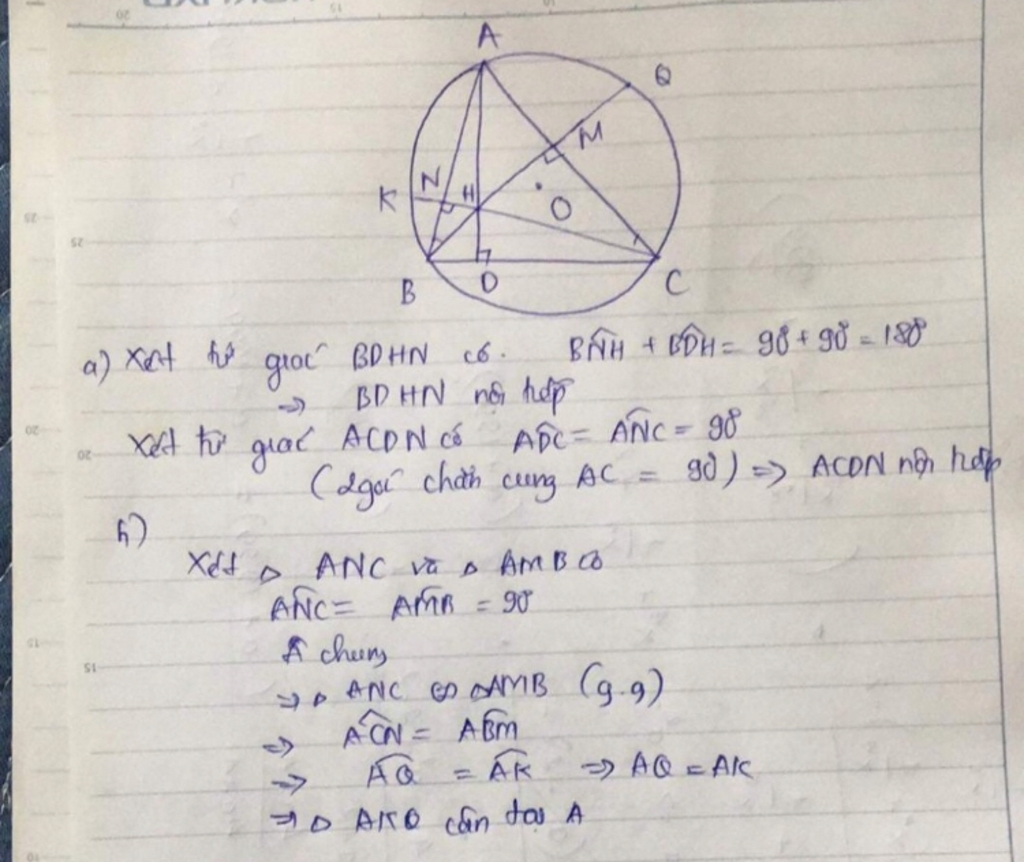 a) Chứng minh: BDHN, ACDN là tứ giác nội tiếp.