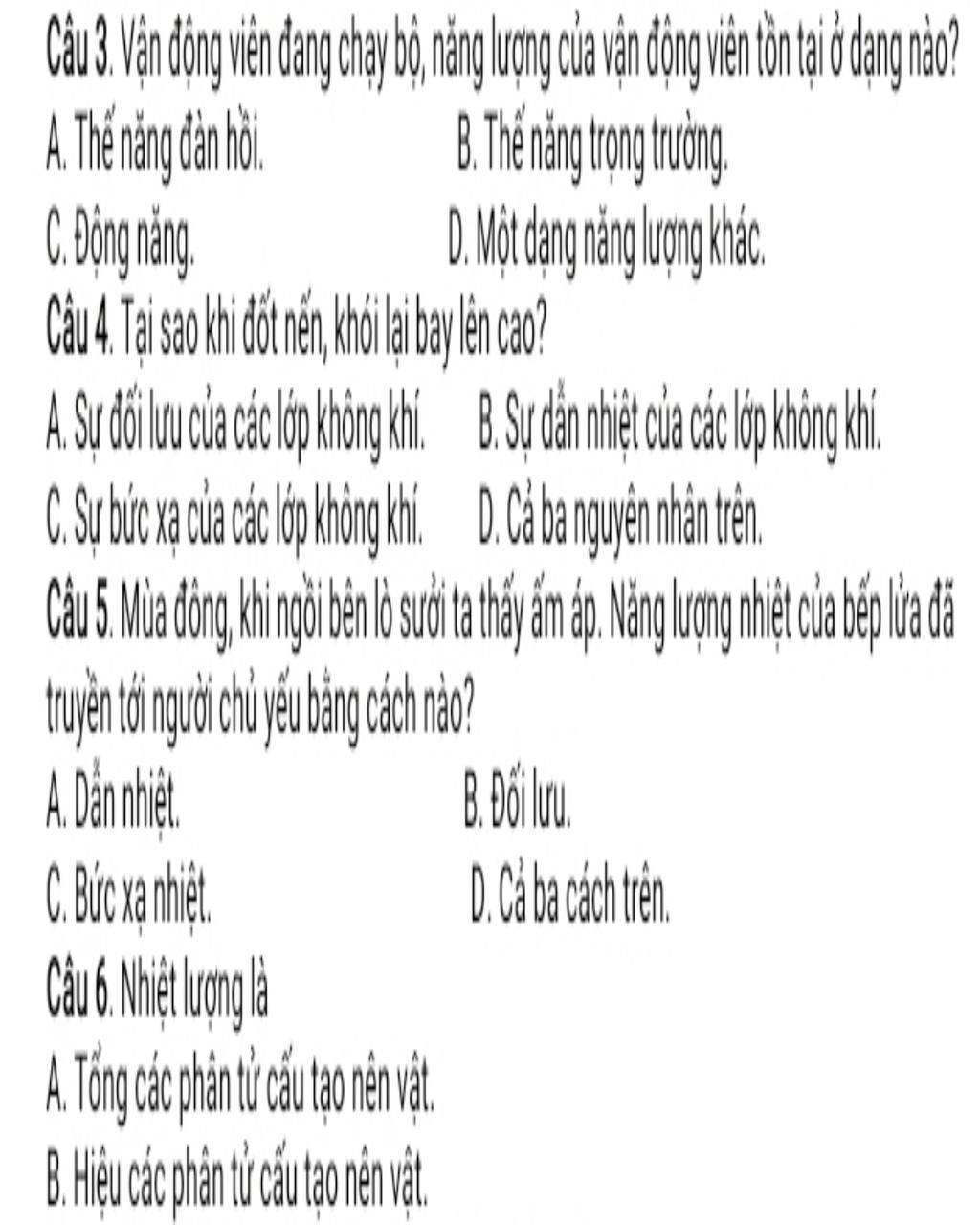 Câu 3. Vận động viên đang chạy bộ năng lượng của vận động viên tồn tại ở dạng nào?