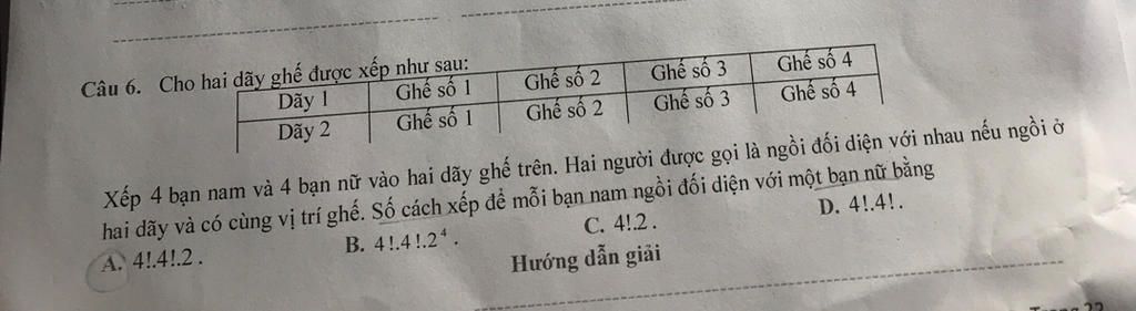 Câu 6. Cho hai dãy ghế được xếp như sau: