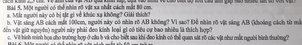 Bài 5. Một người có thể nhìn rõ vật xa nhất cách mắt 80 cm.