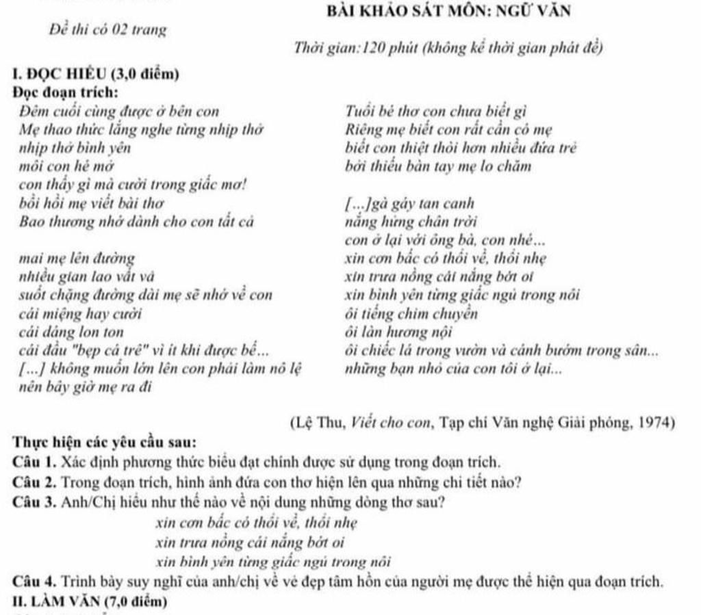 C4. Tâm hồn người mẹ luôn luôn hướng về đứa con. Ngày mai mẹ phải đi xa nên tất cả những điều tốt đẹp sẽ đến với đứa con của mình. Người mẹ luôn nhớ, luôn in dấu tất cả những biểu cảm của con. Từ đó, chúng mình càng trân trọng, yêu quý những người bà, người mẹ, thêm hiểu những giá trị mà văn học mang lại...