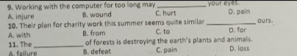 9. C hurt one's eyes ~ làm tổn thương mắt