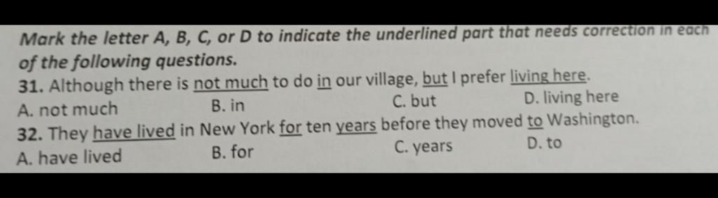 $→$ Tạm dịch: Họ đã sống ở New York trong mười năm trước khi chuyển đến Washington.