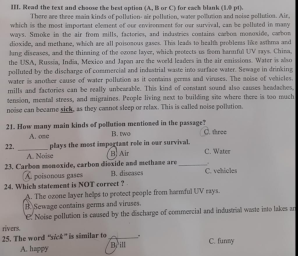 III. Read the text and choose the best option (A, B or C) for each blank (1.0 pt).