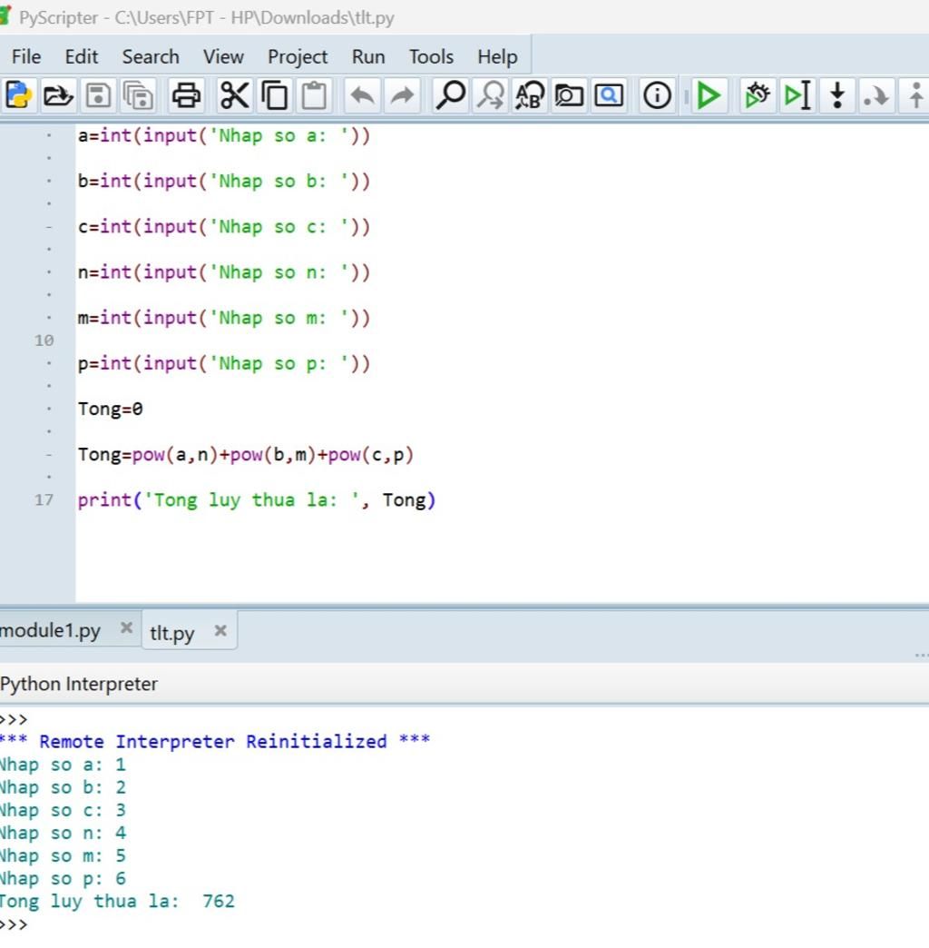 Tong=pow(a,n)+pow(b,m)+pow(c,p)