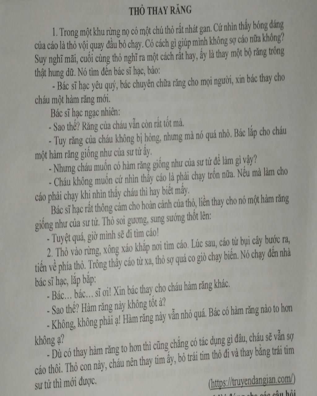 Nếu là thỏ con trong câu chuyện, khi nghe lời khuyên của bác sĩ em sẽ rèn luyện tính cách và trí tuệ để trở thành một chú thỏ dũng cảm và mưu trí thay vì đi thay hàm răng.