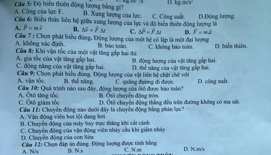 `-` Khi vận tốc vật tăng gấp đôi thì động lượng vật tăng gấp đôi ( do `\vec{P}=\vec{v}.m` mà `m` không đổi )