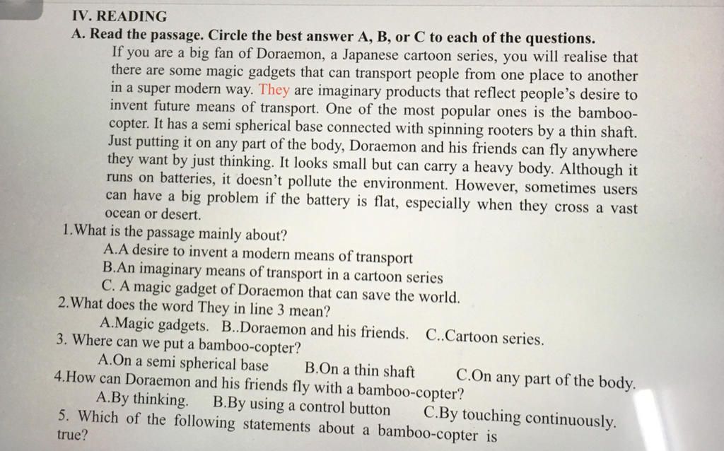A. Read the passage. Circle the best answer A, B, or C to each of the questions.