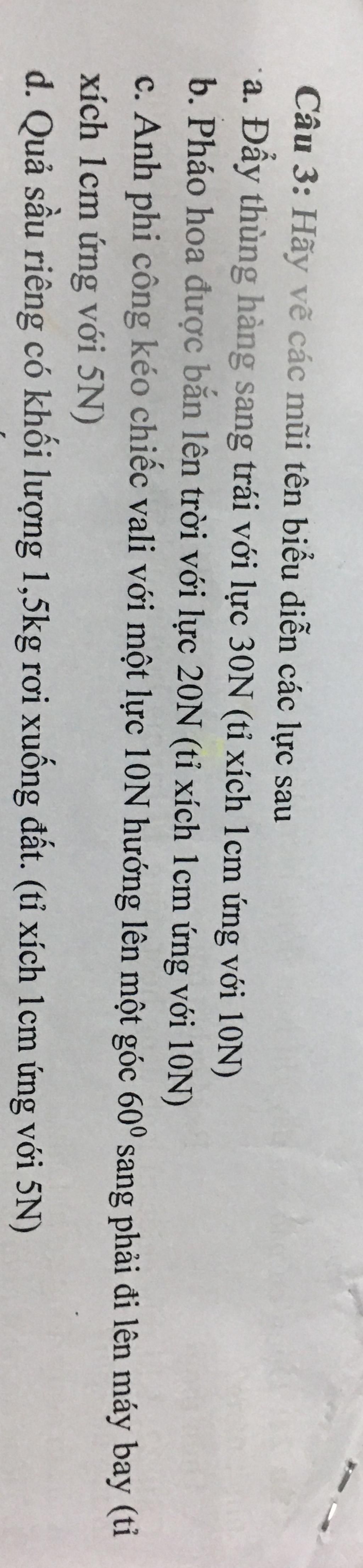 Câu 3: Hãy vẽ các mũi tên biểu diễn các lực sau