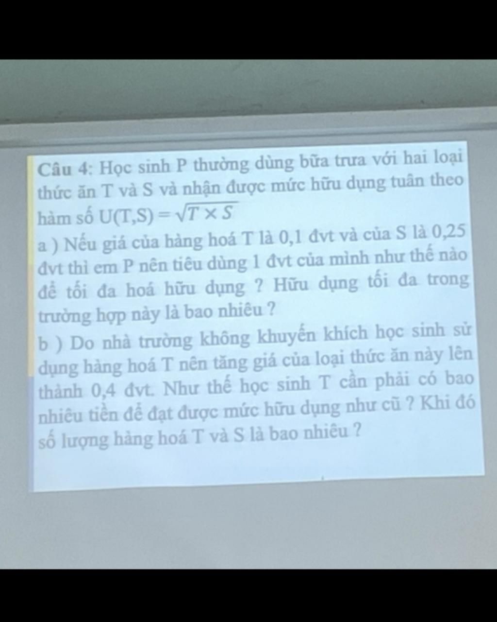 thức ăn T và S và nhận được mức hữu dụng tuân theo