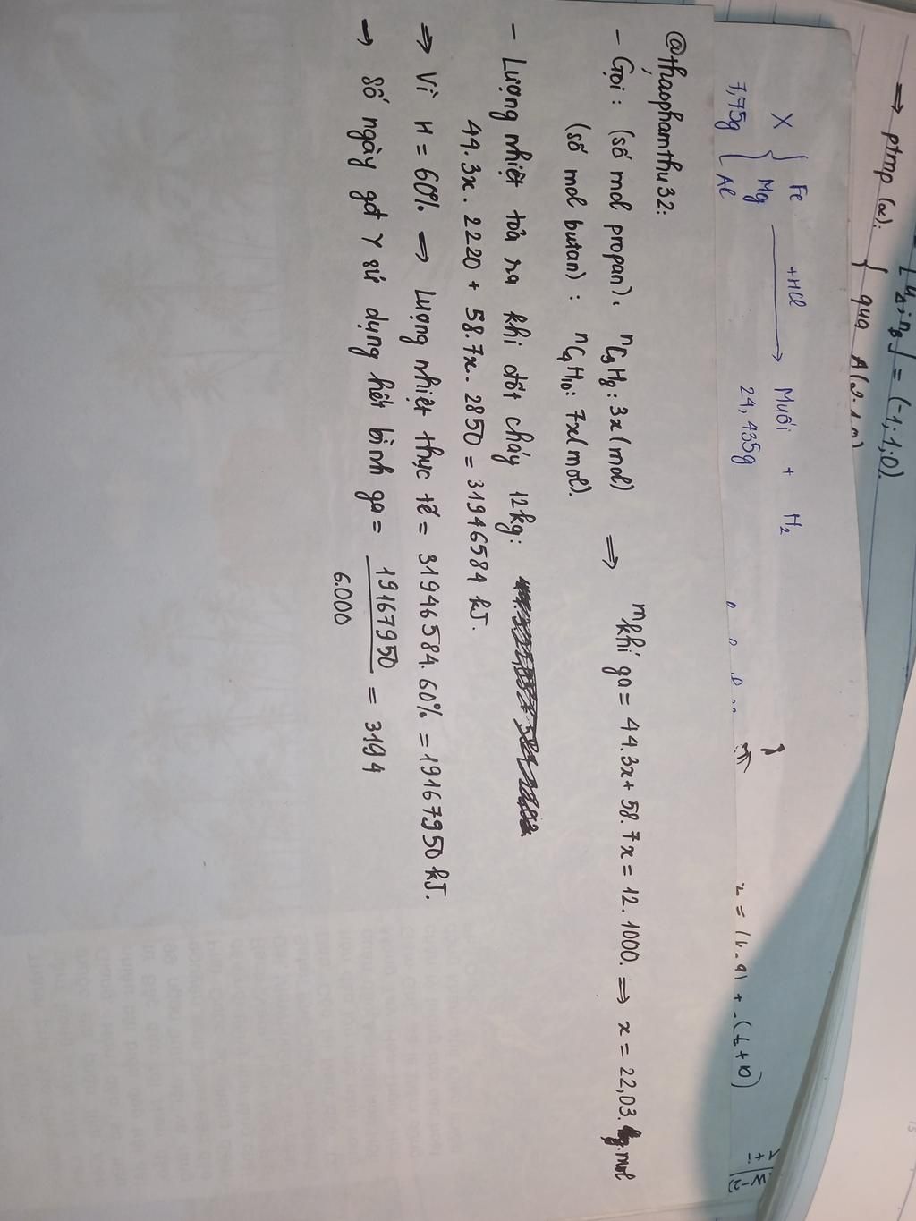 Suy ra $\begin{cases} n_{C_3H_8}=3x=66,9(mol)\\n_{C_4H_{10}}=7x=156,1(mol) \end{cases}$