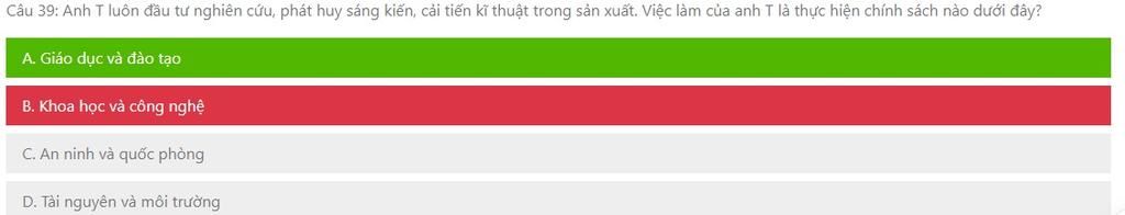 Anh T luôn đầu tư nghiên cứu, phát huy sáng kiến, cải tiến kĩ thuật trong sản xuất. Việc làm của anh T là thực hiện chính sách: