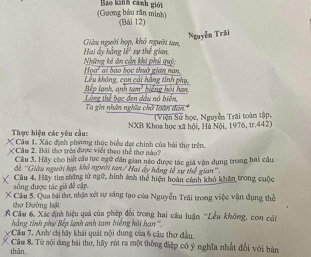 - Nhấn mạnh những chiêm nghiệm của Nguyễn Trãi về sự thay đổi của lòng người: Khi giàu có thì nhiều người ân cần, thăm hỏi; ngược lại, lúc cơ hàn ai nấy xa lánh, thờ ơ.