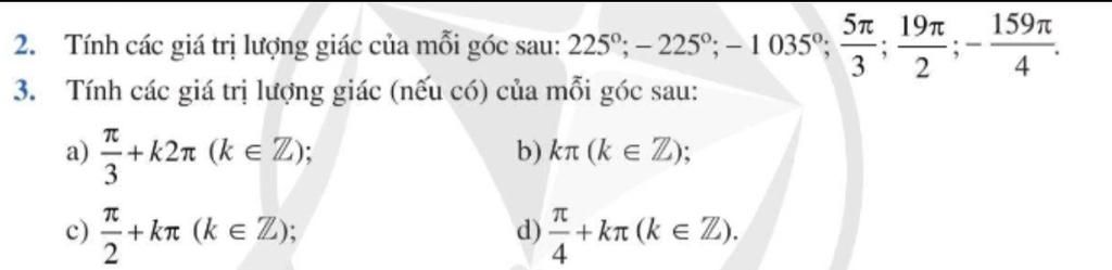 2. Tính các giá trị lượng giác của mỗi góc sau: 225; – 225; – 1 035;