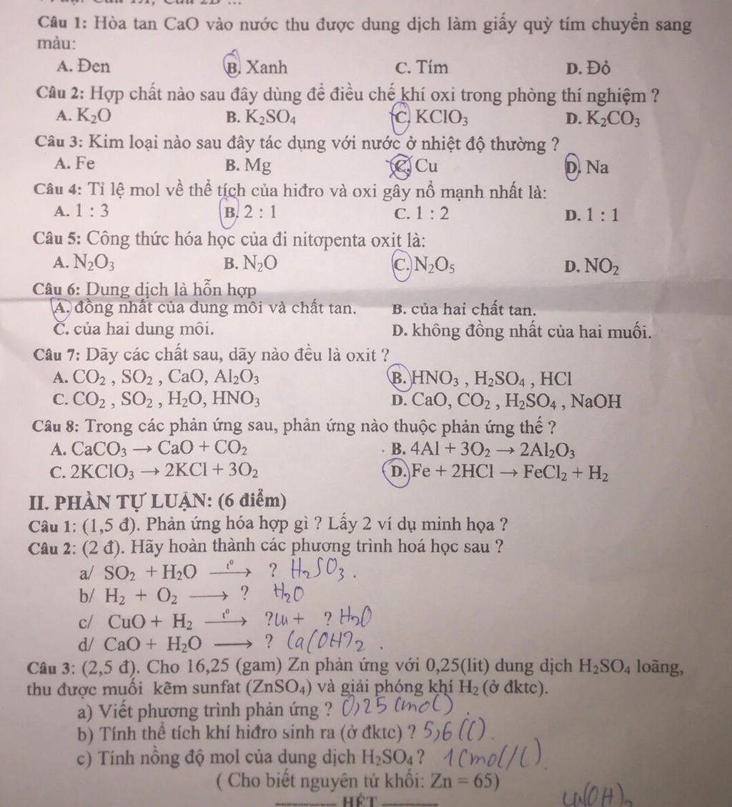 Đáp án: cau 3) a) `Zn+H_2SO_4`-->`ZnSO_4+H_2`