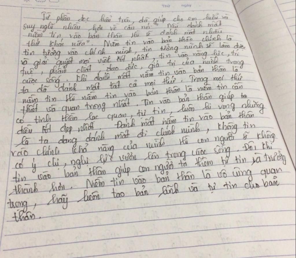 Ý 1: Niềm tin vào bản thân là niềm tin cần thiết nhất trong mọi niềm tin.