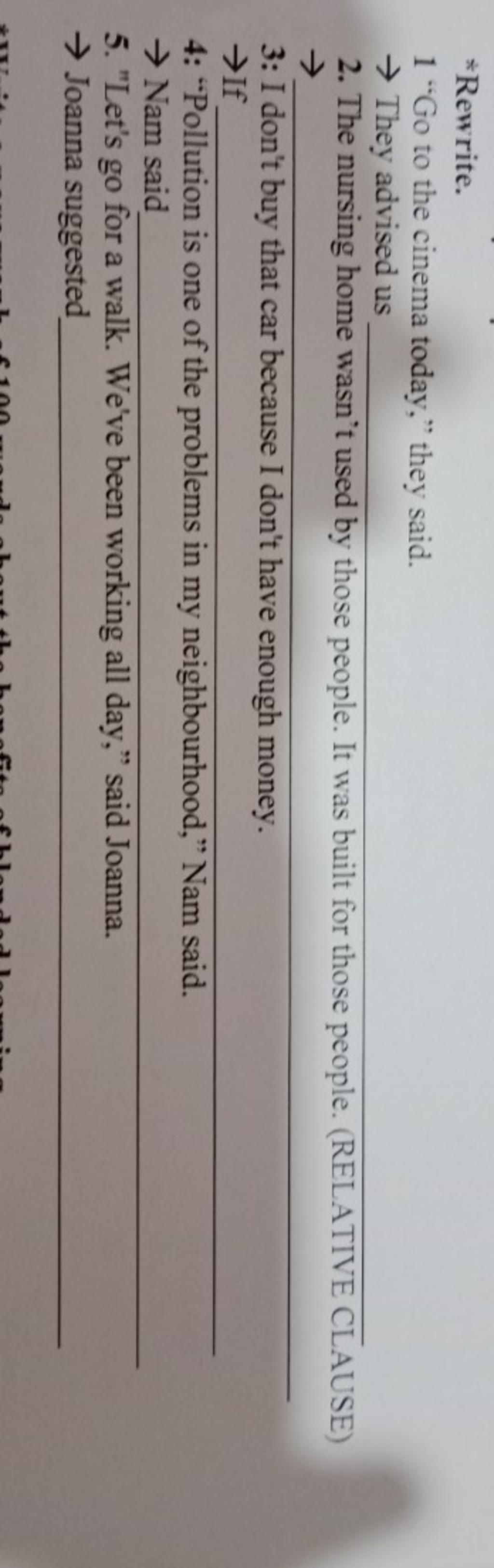 4. Nam said (that) pollution was one of the problems in his neigbourhood.