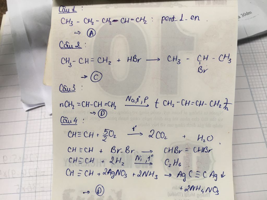 3. D CH2=CH-CH=CH2(buta 1,3 ddien hay divinyl)