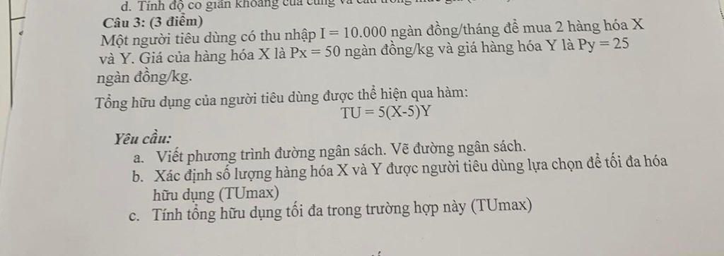 và Y. Giá của hàng hóa X là Px = 50 ngàn đồng/kg và giá hàng hóa Y là Py = 25