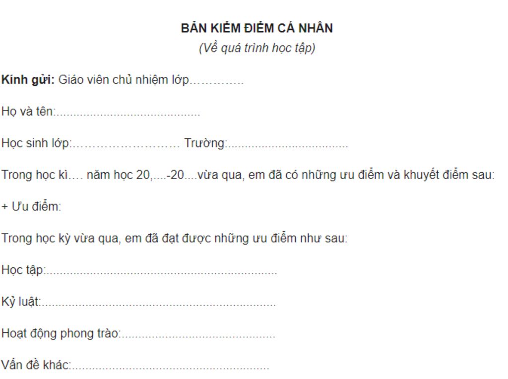 Làm mẫu cho mình bản tự kiểm điểm quá trình học tập với