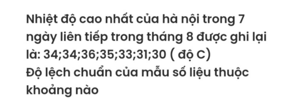 `=>` Độ lệch chuẩn của mẫu số liệu thuộc khoảng `(1;2)`