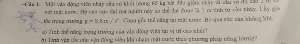 `a)` Thế năng trọng trường của vận động viên tại vị trí cao nhất là`:`