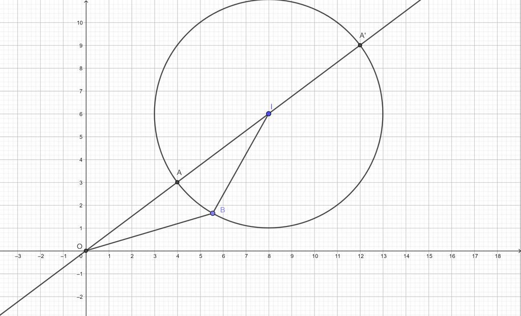 $OI cắt$ $(C)$ tại điểm gần $O$ hơn là $A$