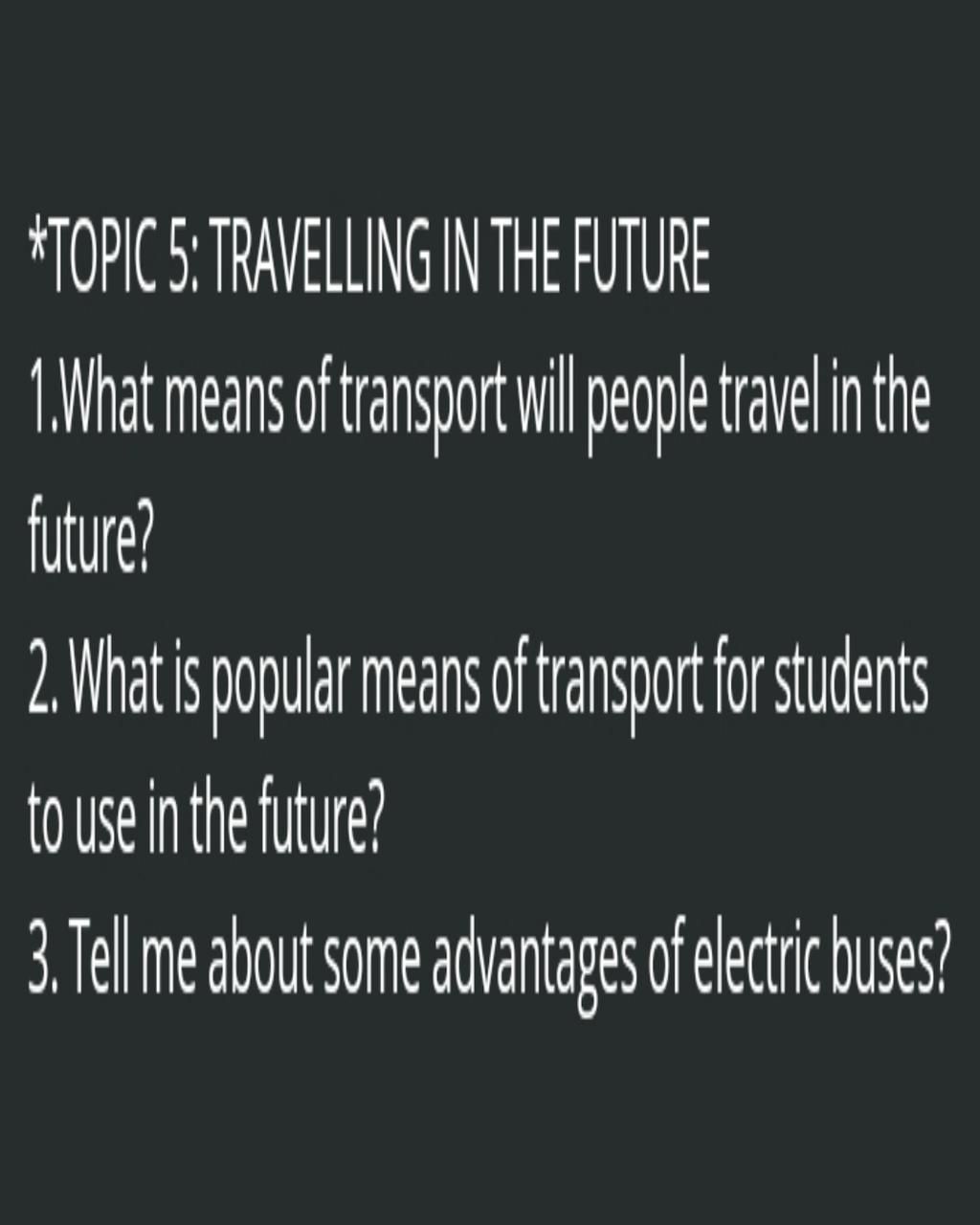 *TOPIC 5: TRAVELLING IN THE FUTURE