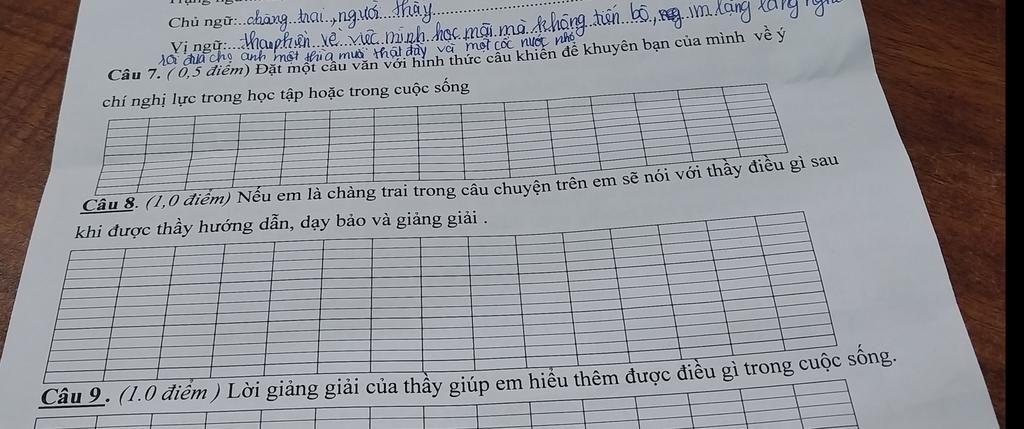 `-` Đó là: chàng trai, việc, mình, người thầy, anh, thìa muối, cốc nước