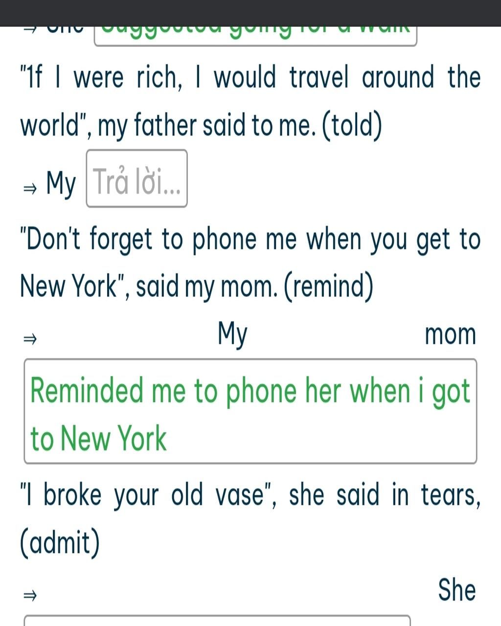 `->` S + said/told sb that + S + V(lùi thì) + O.