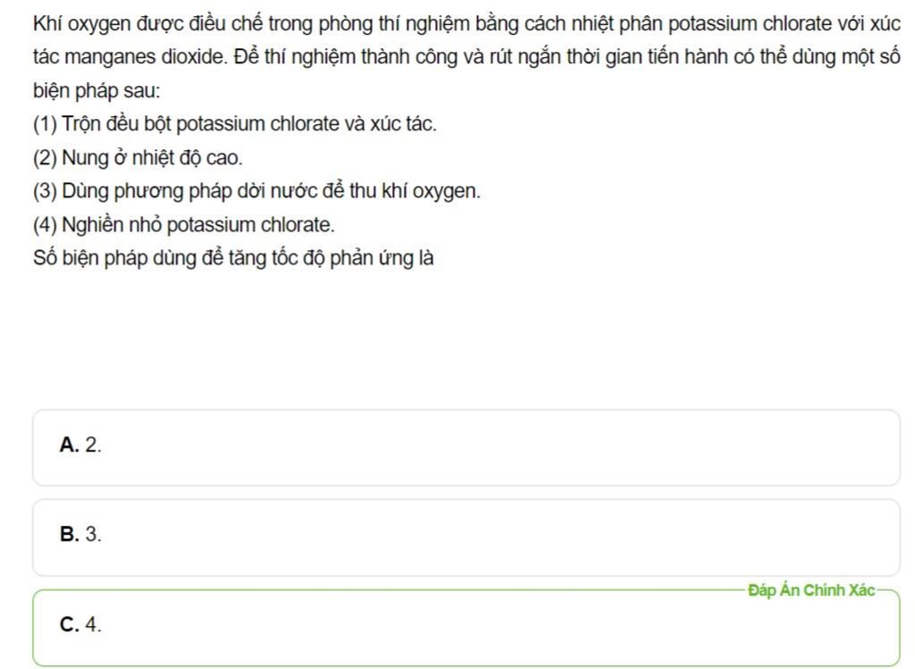 tác manganes dioxide. Để thí nghiệm thành công và rút ngắn thời gian tiến hành có thể dùng một số