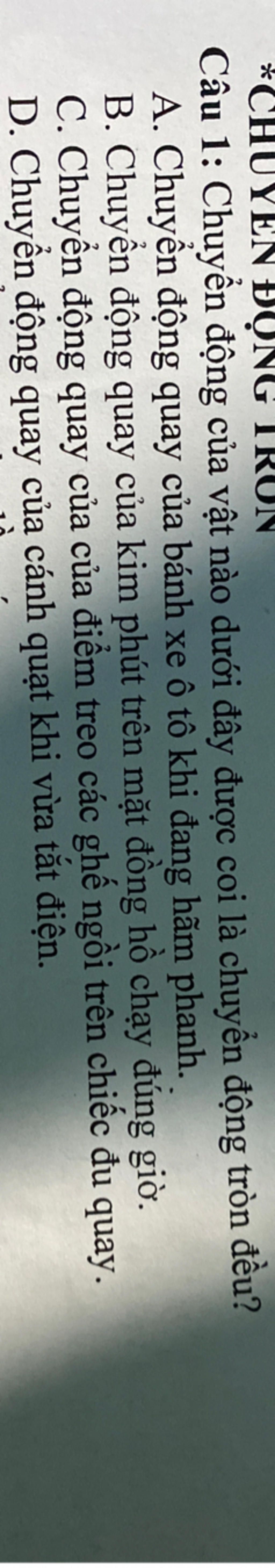 Chuyển động của kim đồng hồ là chuyển động đều và đường chuyển động vẽ lên hình tròn.
