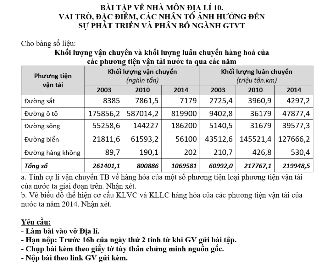 Áp dụng công thức tính Cự li vận chuyển trung bình:
