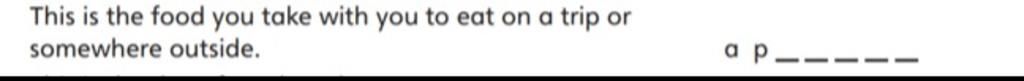 $\rightarrow$ Dịch: Đây là thức ăn bạn mang theo để ăn trong một chuyến đi hoặc một nơi nào đó bên ngoài.