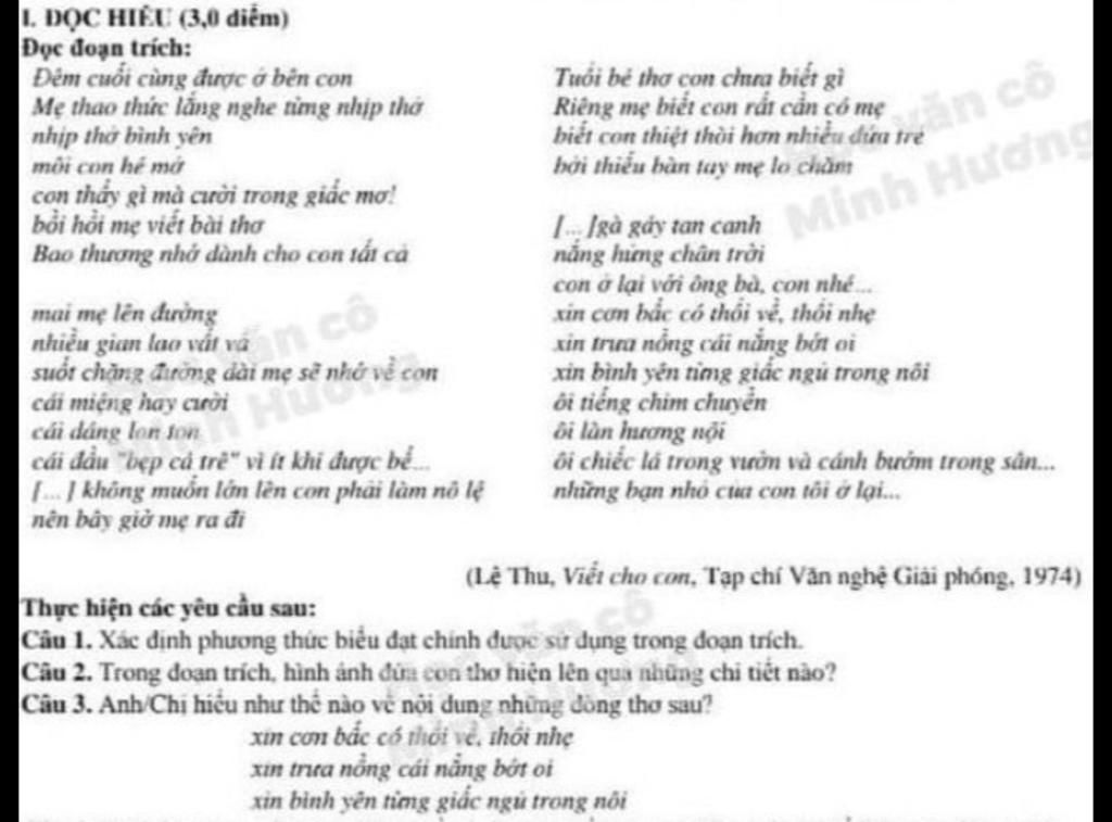Câu 3: Nội dung: Thể hiện niềm khao khát thiên nhiên có thể nhẹ nhàng, cuộc đời nhẹ nhàng, bình yên hơn để con có thể lớn lên trong yên bình.