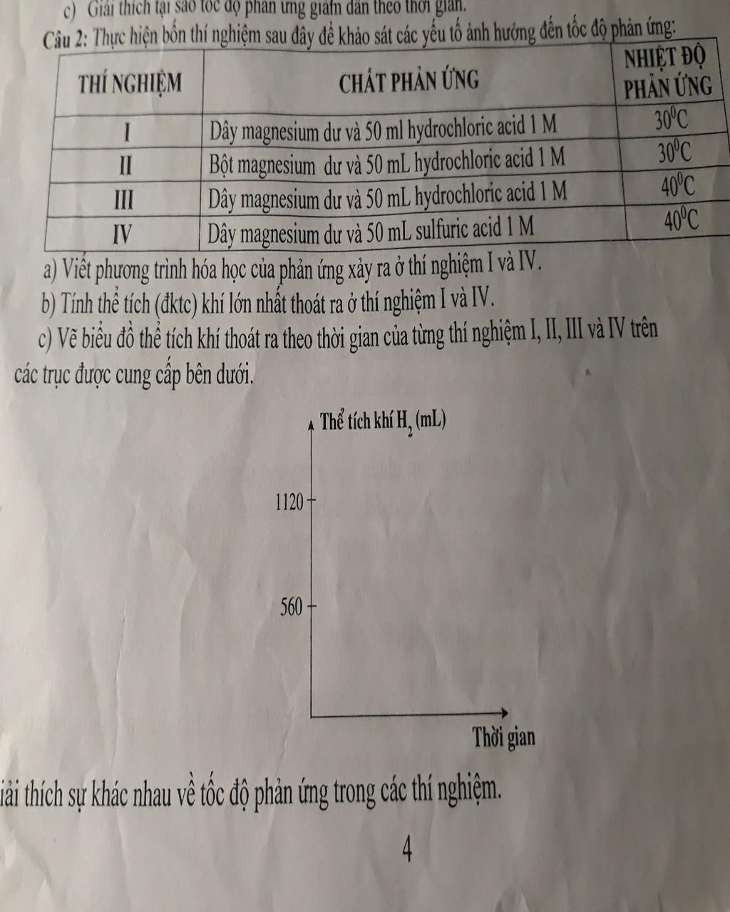 Thí nghiệm $III, IV$ dùng magnesium dây, cùng ở một mức nhiệt độ nên đồ thị trùng nhau nhưng $V_{\max}$ khác nhau do lượng $H^+$ trong dung dịch là khác nhau.