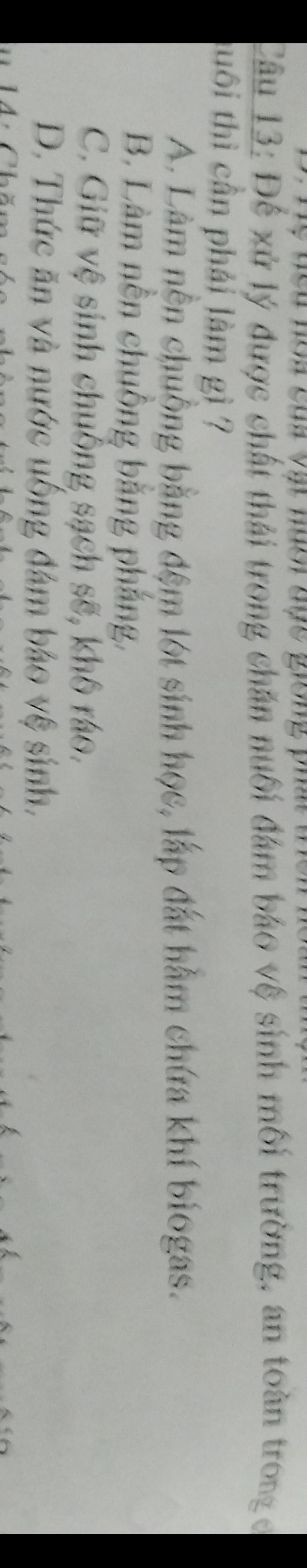 A. Làm chuồng bằng đệm lót sinh học , lắp đặt hầm chứa khí biogas