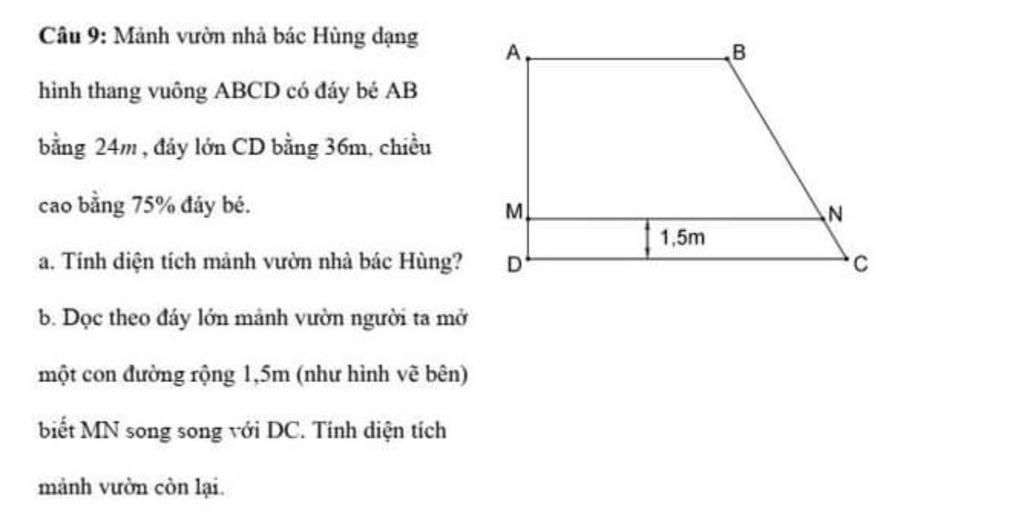 Diện tích mảnh vườn nhà Bác Hùng là: