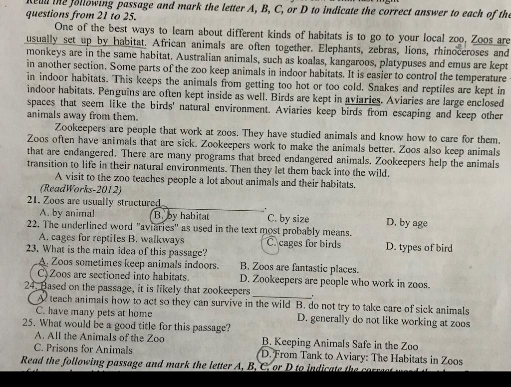 `->` Tiêu đề hay nhất cho đoạn văn là: Từ Tank đến Aviary: Môi trường sống trong sở thú.