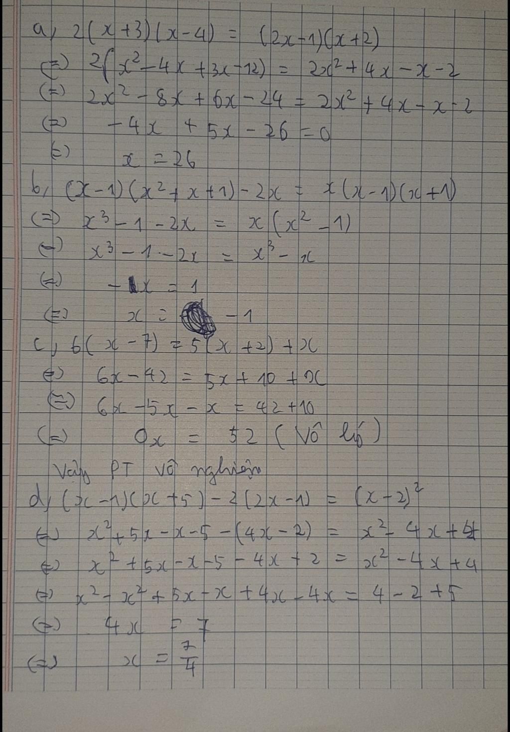 ` a)2(x+3)(x-4)=(2x-1)(x+2)`